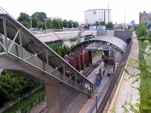 ![]() Station platform viewed from street level | ||||||||||||||||||||