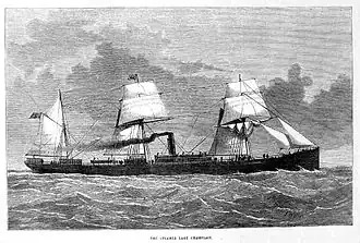 SS Lake Champlain was built in 1874 at Glasgow by the shipbuilders London & Glasgow Co. Ltd., she was launched on Christmas Day 1874 and sailed for a mere 13 years. On 13 April 1875, she departed on her maiden voyage from Liverpool to Quebec and then to Montreal. Until 1884, her regular run was between Liverpool and Quebec. On 23 November 1885, near Matane, she collided with the SS Bentholme which sank as a result. On 30 June 1886, she ran aground on the Antrim coast, but was refloated, sold, and renamed Lismore. On 8 June 1888, she was wrecked at Porto Plata in the Dominican Republic.