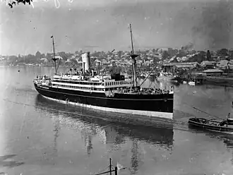 In 1917, she was used a troopship, transporting the New Zealand 27th and 28th Main Regiment.[1] She then resumed commercial service with Huddart Parker.