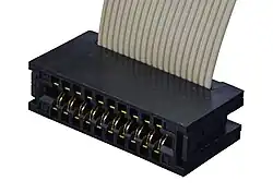 In the ST-506 interface, the drive connects to a controller card with two ribbon cables carrying signals, while a third cable provides power. The two signal cables are the wide 34-pin control cable and the narrow 20-pin data cable. The control cable interface is very similar to the standard Shugart floppy disk interface; like that floppy disk interface, it can support four drives. The data cable carries two (Read, Write) separate unidirectional RS-422 compatible differential signal pairs with 100ohm terminating resistors.[9]: 20 As with floppy disk drives, a flux reversal corresponds to a rising edge (the positive line of the differential pair attaining a more positive voltage than the negative pair) of a short pulse that is ended with a falling edge after a fixed timeout and thus a return-to-zero code. Even though the timing of these pulses and flux reversals is completely in the hands of the controller, the system design was for MFM, and user data bits were represented by the absence or the presence of these pulses at specific points in time while the controller was precisely synchronized to the flux reversal stream on the platter. While up to four drives can share a control cable, each drive has its own dedicated data cable connecting it to the hard disk controller (HDC). Most HDCs supported only two drives.