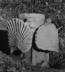 Various sculptures and pillar capitals were found near the Heliodorus pillar in Besnagar, and it is thought they were dedicated to Vāsudeva's kinsmen, otherwise known as the Vrishni heroes and objects of the Bhagavata cult.[24] These are a tala (fan-palm capital), a makara(crocodile) capital, a banyan-tree capital, and a possible statue of the goddess Lakshmi, also associated with the Bhagavat cult.[25] Just as Garuda is associated with Vasudeva, the fan-palm capital is generally associated with Samkarsana, and the makara is associated with Pradyumna.[22][16] The banyan-tree capital with ashtanidhis is associated with Lakshmi.[25]