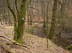 After a few hundred metres, the streem feeds into the Ronsdorf reservoir. Below the reservoir's dam it flows through several pools, constructed to harness water power from the dam for mills which are no longer in operation.