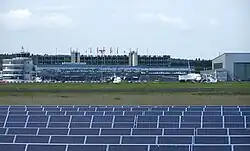 Since 4 December 2018, air traffic control for the airport has been provided remotely from a remote tower centre in Leipzig (450 km away). The project had received funding from the SESAR Joint Undertaking under the European Union’s Horizon 2020 research and innovation programme under grant agreement No 730195 and No 874470.[7] The standard ATC systems are complemented with out-of-the-window 360° and 190° view, with pan-tilt-zoom cameras which can track objects like automatic binoculars, and infrared cameras which give more details during darkness. Sensors can track up to 256 objects in parallel.[8] Despite the airport being controlled from a centre, with plans to control other airports (Erfurt in 2021 and Dresden later),[8] one air traffic controller will provide service to one airport at a time, however the controllers will be cross-trained for the other airports as well.[9]