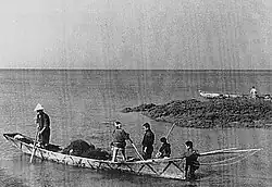 The sabani also appears in historical accounts such as the story of the Hisamatsu Go-yūshi ("Five Brave Men of Hisamatsu"), who are said to have rowed a sabani from Miyako Island to Ishigaki Island to report the sighting of the Russian Baltic Fleet during the Russo-Japanese War.[6]