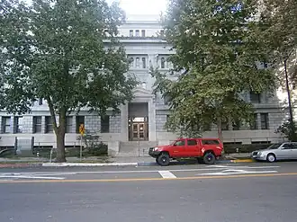 The Sacramento Hall of Justice, listed on the National Register of Historic Places, is a historic building located in Sacramento, California. It is a premiere local example of Beaux Arts Classicism.[2] The inspiration for the building comes from local architect Rudolph Herold, who sought the contract for the Hall of Justice, as well as the City Beautiful movement during the early 20th century.[2] Shea & Lofquist were awarded the contract and their design was required to be compatible with the Herold-designed Sacramento County Courthouse at Seventh and I streets.[2]