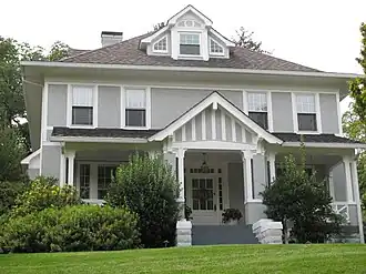 The Saegmuller House is a historic home located in Arlington, Virginia. It was built between 1925 and 1927, and is 2+1⁄2-story, stuccoed frame central-hall plan dwelling with Prairie School influences. It sits on a concrete block foundation and has a pyramidal roof. It features an original front porch with large piers and columns and a prominent central gable and deep overhanging eaves. The house was once associated with the Saegmuller dairy farms operations.[3]