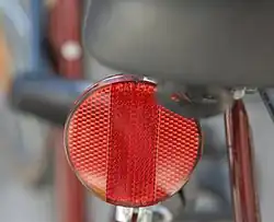 A bicycle reflector or prism reflector is a common safety device found on the rear, front and wheels of bicycles. It uses the principle of retroreflection to alert another road user of the bicycle's presence on the road.