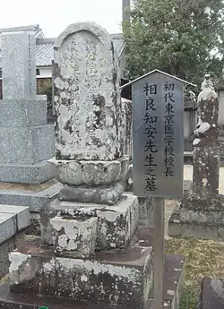Sagara Tomoyasu (相良 知安; 1836–1906)[1] was the third son of a surgeon in the feudal domain Saga (nowadays Saga Prefecture), Japan. Among his childhood friends was Etō Shimpei (1834–1874) who lived nearby and also became one of the influential figures of the Meiji Restoration.