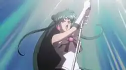 - ^ Uses the Garnet Orb. First appears in act 31. When Sailor Pluto and the other Soldiers are controlled by Galaxia in act 50, she uses Galactica Chronos Typhoon. She also joins with Sailor Saturn for Galactica Cannon.