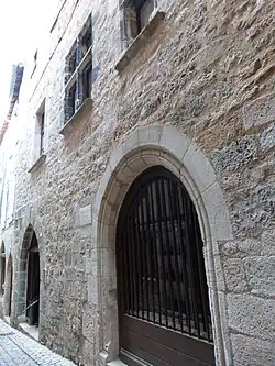 - The Caserne des Anglais (English Barracks) house, rue Guilhem-Peyré, was a base for English troops from 1352 to 1354, and eventually became a royal barracks. In 1685, dragoons were based here. After the Revolution, it was converted into a town house. The building has two stone levels topped by a third of half-timbered brick. The street facade is pierced by two entrances; the pointed arch on the left dates from the 13th or 14th century, and the simple moulded arch to the right features a 17th-century wooden door. Three mullioned windows illuminate the first floor (end 15th - early 16th century). Wooden galleries crown the top floor.[8]