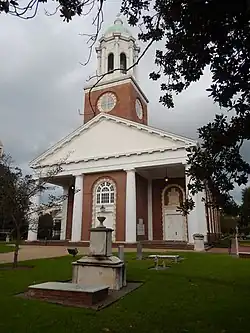 Saint Paul's Church is a historic Episcopal church in downtown Augusta, Georgia, adjacent to Riverwalk Augusta. A member of the Episcopal Diocese of Georgia, Saint Paul's conducts its worship services using the 1979 Book of Common Prayer. The church, located on the corner of 6th and Reynolds Streets, is the oldest church congregation in Augusta. It was established in 1750 by the Church of England at the site of Fort Augusta. There have been five churches on the site. The current church building, which combines features of Federal architecture with those of the Georgian and Greek Revival styles, was designed by Henry Ten Eyck Wendell and dedicated in 1920.[2] It can seat up to 600 people.