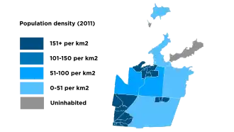 - ^ If only including cities fully within the parish, Parham would be the largest city. The part of All Saints in Saint Peter has a larger population than Parham. All Saints extends across three parishes.