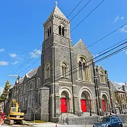 In 1924, the church rectory began plans for expansion after a donation of $70,000 ($1,284,330 USD in 2024) by Philadelphia businessman Thomas Fitzgerald.[7] In 1925, the church's convent caught fire and burned to the ground. Later in the year, the final touches on the main building were completed.[8] The convent was fully restored and blessed by Bishop J. Carroll McCormick in 1950.[9] Minor repairs were made in 1990 after a drunk driver crashed his car into the steps leading up to the church.[10] 2 months later, a gas explosion damaged the church's lower school, injuring one person.[11]