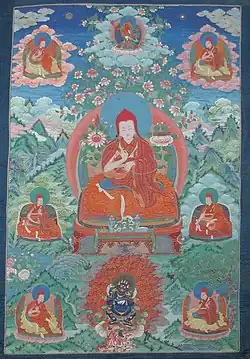 Sakya Pandita[1]Kunga Gyeltsen (Tibetan: ས་སྐྱ་པཎ་ཌི་ཏ་ཀུན་དགའ་རྒྱལ་མཚན, Wylie: Sa skya Paṇḍita Kun dga’ rgyal mtshan[1]) who lived from (1 April 1182[2] – 28 December 1251[3]) was a Tibetan spiritual leader and Buddhist scholar and the fourth of the Five Sakya Forefathers (Wylie: sa skya gong ma lnga).[4] Künga Gyeltsen is generally known simply as Sakya Pandita (or Sapan for short), a title given to him in recognition of his scholarly achievements and knowledge of Sanskrit. He is held in the tradition to have been an emanation of Manjusri, the embodiment of the wisdom of all the Buddhas.[5]