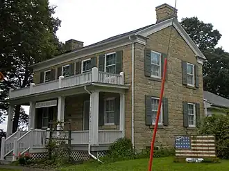Salem was settled originally by Quakers with the intent that it be a community of Friends. In 1835 Aaron Street, while wending his way westward, came upon an uninhabited spot and declared "Now have mine eyes beheld a country teeming with every good thing…Hither will I come with my flocks and my herds, with my children and my children's children, and our city shall be called Salem, for thus was the city of our fathers, even near unto the seacoast."[4] Independently another Quaker, Isaac Pigeon, who may have visited the spot before Street, brought his family to the area. They became the first citizens of Salem, and with Peter Boyer, began to recruit other Quakers to migrate westward to join them. As early as 1837, Friends meetings were held in private homes, and after the village was laid out in 1839 by Aaron Street Jr., and Peter Boyer, a meeting house was built.[5] From the early years members of other Christian denominations settled in Salem, so it was never an exclusively Quaker community.