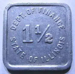 Sales tax tokens are fractional cent devices that were used to pay sales tax on very small purchases in many American states during the years of the Great Depression. They were created as a means for consumers to avoid being "overcharged" by having to pay a full penny tax on purchases of 5 or 10 cents. Issued by private firms, by municipalities, and by twelve state governments, sales tax tokens were generally issued in multiples of 1 mill (1⁄10 cent).[1]