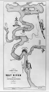 Geographically, the Salt River is a 150-mile-long river running through the state of Kentucky, running from near Parksville and emptying out into the Ohio River near West Point.[2] Before the use of railroads, the Ohio River was the main waterway of travel, with boats carrying hundreds of passengers every day. As an implication, to go up Salt River was to leave the main, conventional way of travel, leaving people with the potential to "end up in the middle of nowhere on a dead-end stream."[3] This reflects the metaphor of political defeat which it symbolises.