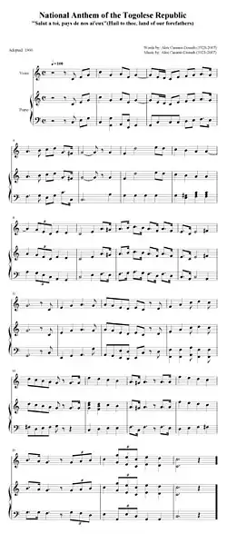- ^ "The Anthem Philatelist: The National Anthem of Togo". The Anthem Philatelist. 2010-08-08. Retrieved 2021-12-30.