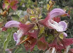 Salvia dolomitica (the dolomite sage or Pilgrim's Rest pink sage) is a perennial shrub native to the Mpumalanga and Limpopo provinces of South Africa, typically growing at 900–1500 m elevation. Profusely covered with grey leaves, it grows to 2 m in height and width in the wild, with pale lilac flowers.[1]
