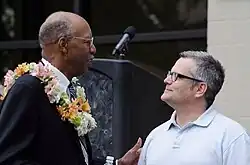 In 2005, Adams met Beau Breedlove, a 17-year-old interning for Oregon State Representative Kim Thatcher.[84] In September 2007, Adams denied rumors of a sexual relationship between the two, saying of Breedlove, "He was looking for a mentor. I tried to be both prudent and useful to him."[85] In January 2009, after being confronted with a story in Willamette Week, Adams admitted to having a sexual relationship with Breedlove.[86][87] Breedlove confirmed Adams' accounts.[4][84][88] Adams apologized, saying he had lied to avoid accusations of grooming a minor and the likely disruption such allegations would cause in his mayoral campaign.[89][90][91] Adams announced his intention to remain in office.[88]