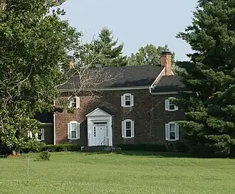 Andrew Crocket, Samuel's father, received a 640-acre (260 ha) grant for Revolutionary War services. He built his first log home on the southeast side of what is now Brentwood in 1799. His son, Samuel Crockett built a two-story brick home nearby, which was completed ca. 1808. The home became known as "Forge Seat" because of the iron forge located on the property. Samuel Crockett and his son, Andrew, made iron implements here and specialized in rifle making.[2] Crockett's rifles "were identified by their fine craftsmanship and the initials 'S. & A. C.' engraved on the barrels."[3] On his way to New Orleans and the War of 1812, Andrew Jackson stopped here and purchased rifles to arm his soldiers. It is also said that Davy Crockett stopped on his way to Texas as well.[4]