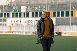 ![]() Samuel Fagerholm during a Damallsvenskan game with Umea IK in 2022 | |||