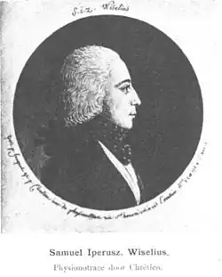 Samuel Iperuszoon, Knight Wiselius (4 February 1769 – 15 May 1845) was a successful Dutch lawyer and a prominent Patriot and democrat, involved in the dismantling of the Dutch East India Company (VOC) and the negotiations over the Cape. Wiselius was a witty, Voltairian spirit with political views far ahead of his time who would end his days writing dramas on Classical themes.[2] Wiselius corresponded with nearly all the main players at the time of the Batavian Republic and it would be impossible to know that period completely without his carefully kept and neatly written correspondence.[3] He was also a poet, historian and superintendent of the police.