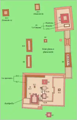 San Andrés (formerly known as Campana San Andrés) is a pre-Columbian site in El Salvador,[1] whose occupation began around the year 900 BC as an agricultural town in the valley of Zapotitán in the department of La Libertad. This early establishment was vacated by the year 250 AD because of the enormous eruption of the caldera of Lago Ilopango, and was occupied again in the 5th Century, along with many other sites in the valley of Zapotitán. Between 600-900 AD, San Andrés was the capital of a Maya polity with supremacy over the other establishments of Valle de Zapotitán.