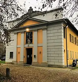The monastery was built in the 12th century and belonged to the Benedictine order. In 1217 Pope Honorius III granted several privileges to the monastery and, in 1384, Gian Galeazzo Visconti had the church restored and embellished.[1] In 1421 the bishop of Pavia Pietro Grassi donated the monastery to the Order of Friars Minor, who in 1458 had the church rebuilt, making it frescoed by Vincenzo Foppa.[2] In 1478 he came to San Giacono della Vernavola, Bernardine of Feltre, the future Blessed, who, after several moves, settled permanently in the monastery in 1493 where he died the following year, and his cell is still preserved inside the buildings that made up the monastery.[3] In October 1524 the monastery was occupied by the army of the king of France Francis I during the siege of Pavia. For long months, until the battle of February 1525, the friars had to accommodate contingents of Swiss mercenaries in the service of the king of France. The church was renovated in 1730ː the vault and the walls were frescoed by Pietro Antonio Magatti, while the chapels were enriched by large paintings by Carlo Antonio Bianchi, Johann Christoph Storer and Francesco Bianchi.[4] In 1805 the monastery was suppressed by decision of the Kingdom of Italy, and in 1806 it became the Agricultural Garden of the Faculty of Agronomy of the University of Pavia.[5] In 1808 the church, the bell tower and the cloister were demolished, while in 1838 the south façade of the neoclassical building was built to a design by Giuseppe Marchesi. On the top of the tympanum of the facade is still the double-headed eagle in Viggiù stone, symbol of the Austrian Empire.[6] In 1859, with the passage of Lombardy from the Austrian Empire to the Kingdom of Italy, the Faculty of Agriculture was closed, and the complex became home to the geophysical observatory of the University of Pavia, so much so that a geodynamic pavilion was built. In 1994 the former monastery was ceded by the University of Pavia to the Carabineri Command of the Forest, Environmental and Agri-food units. Of the ancient monastery are preserved, in addition to the cell of Blessed Bernardine of Feltre and the surrounding wall, also a chapel with a porch of the 16th century, in which remains of frescoes persist.[7]