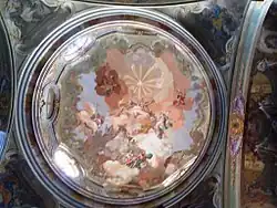 A church at the site is documented from the 14th century. It was reconstructed in the 18th century by the architect Francesco Gallo, with interior quadratura decoration by Pietro Antonio Pozzo and Giuseppe Dallamano. The altar statuary were carved by Carlo Giuseppe Plura and Stefano Maria Clemente. The main altarpiece is by Claudio Francesco Beaumont. The church gallery has a painting by Carlo Sismonda.[1]