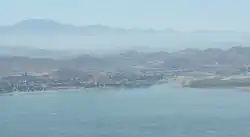 ![]() The mouth of the San Jacinto on Lake Elsinore, viewed from California State Route 74 (Ortega Highway) on the southwest side of the lake | |