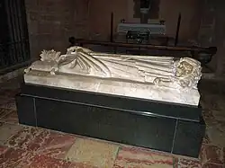 In the summer of 1324, the asthmatic Sancho sought to escape the heat of his kingdom by spending the season in Formiguères. The precaution was futile, however. He died of an asthma attack on 4 September 1324. His nephew, James III, succeeded him.[1] The arrival of Sancho's funeral procession on 11 September caused a tumult in Perpignan, with the townspeople attacking the nobles who accompanied his corpse and seizing the King's remains. The remains are now interred in the newly built Cathedral of Perpignan, which Sancho himself had chosen for his burial.[6]