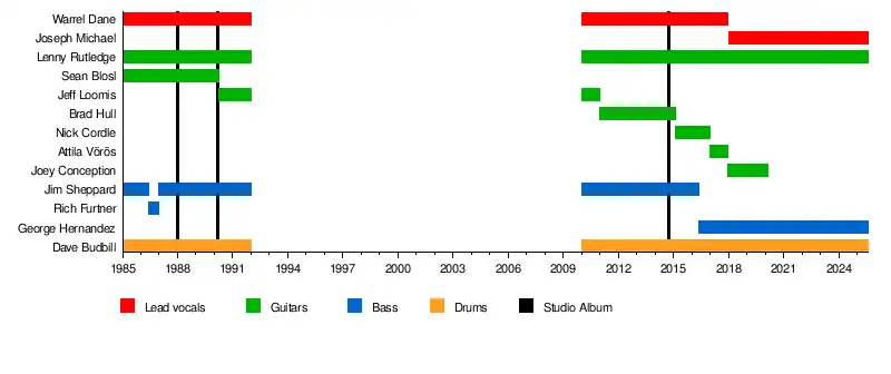 - Warrel Dane – vocals (1985–1992, 2010–2017; his death)
