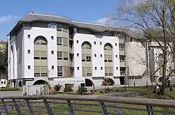 The Accueil Notre Dame was built to replace two older residencies for pilgrims. The old Accueil Notre Dame stood opposite the Underground Basilica, and has been extensively remodelled, being divided into two buildings by removing a section. One building now contains the Chapel of Reconciliation, which used to be the refectory, and also houses the convent of the Sisters of Charity of Nevers. The other section is now known as the Accueil John Paul II, and contains several chapels, the First Aid post and Dispensary, and the offices of the Hospitalité. The other was the Accueil St. Bernadette, which stood across the river from the old Accueil Notre Dame, and was demolished to make way for the new one.