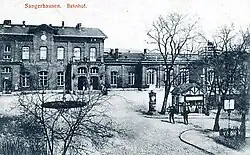 Construction of the station in Sangerhausen began in 1865. The railway between Halle and Hann. Münden was opened for passenger operations on 10 July 1866.[3][4] The first entrance building was built in the same year. Sangerhausen became a junction station in 1881 when the line to Erfurt was added. An ammunition train exploded in the station in 1944 and it was destroyed. Today's entrance building was built in 1963.