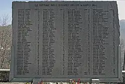 The Sant'Anna di Stazzema massacre was a German war crime,[1][2][3] which was committed in the hill village of Sant'Anna di Stazzema in Tuscany, Italy, in the course of an operation against the Italian resistance movement during the Italian Campaign of World War II. On 12 August 1944, the Waffen-SS, with the help of the Italian paramilitary Brigate Nere, murdered about 560 local villagers and refugees, including more than a hundred children, and burned their bodies. These crimes have been defined as voluntary and organized acts of terrorism by the Military Tribunal of La Spezia and the highest Italian court of appeal.[4][5]