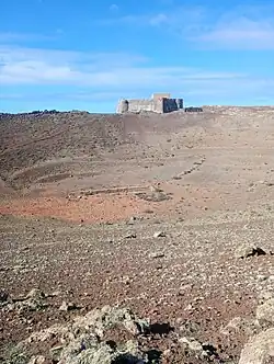 Santa Bárbara Castle (officially Castillo de Santa Bárbara y San Hermenegildo) is a fortress located about 1 kilometer from the town of Teguise on Lanzarote, one of the Canary Islands. It sits atop the Guanapay volcano, on the edge of its crater. The fortress is open to the public and houses the Piracy Museum (Museo de la Piratería).[1][2]