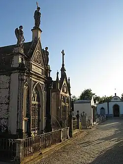 - Church of Santa Bárbara (Portuguese: Igreja Paroquial de Santa Bárbara de Nexe/Igreja de Santa Bárbara), the Manueline, Baroque and Neoclassic architectural site, developed from the 1444 chapel, supported by the Order of St. James, and recognizable by the complex Gothic-like spine vaulted ceiling in its interior and arches, and the tall vertical, square belltower;[4]
