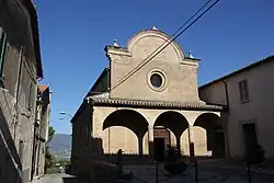 Sant'Illuminata is a Renaissance-style, Roman Catholic church located at the corner of Via Santa Chiara and Via Severini just south of the historic center of Montefalco, in the Province of Perugia, region of Umbria, Italy. The church, originally founded alongside a female monastery, was dedicated to Illuminata of Todi, putatively a martyred saint from the 4th century who lived in a hermitage between Massa Martana and Todi, and gained veneration in this region of Umbria. The church is noted for its early 16th-century frescoes by Francesco Melanzio and others.