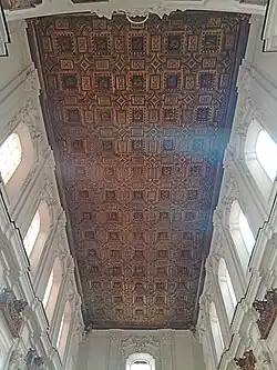 The interior was decorated in stucco by Domenico Antonio Vaccaro; the vaulting uses gilded wood. The chapel entries have carved lintelpieces by Niccolò Tagliacozzi Canale (1728).