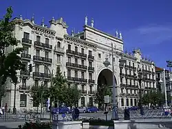 Santander fell victim to a great fire in 1941.[13] Fanned by a strong south wind, the fire burned for two days. The fire started in Cádiz Street, next to the harbour, the Cathedral and the medieval quarter.[14] The fire destroyed the Old Town Hall, Jesús de Monasterio and Vargas streets and Atarazanas square buildings. It led to a major change in the architecture of Santander, away from the older small stone and wood buildings with balconies to the enormous blocks of flats built during the reconstruction.