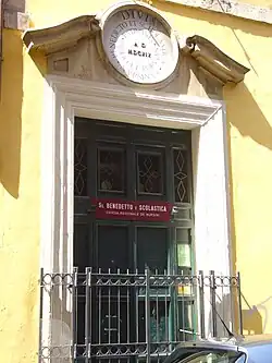 The already existing house chapel was converted into a church with a separate entrance in 1625, and given the dedication is because St Benedict started his monastic career at Norcia before moving to Montecassino. St Scholastica was his sister, and by tradition was the first Benedictine nun. After 1808, during the French occupation of Rome, the church was looted of its artworks and desecrated.[2] In 1841, the church was restored and reopened, and underwent further restoration under Pope Pius IX and Pope Leo XIII.[3] At present it is cherished by its small congregation.