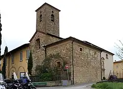 Santo Stefano a Pozzolatico is a Roman Catholic church on Via di Riboia #3 in the neighborhood of Pozzolatico within the town limits of Impruneta, but just north of the Autostrade del Sole circumvaling Florence, and in the province encompassed by the metropolitan city of Florence, region of Tuscany, Italy.