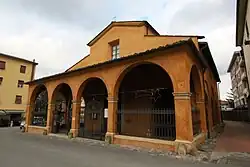 As veneration of the image increased, in 1460, Antonio Adimari, feudal lord of a nearby castle at Strozzavolpe erected an oratory with a loggia. In 1550, a church was erected, with a campanile by 1570. The fresco of the Pietà (1571) fresco by Jacopo dei Caldori in the sacristy, and the crucifix over the main altar were commissioned in 1571. In the 17th century, while the sanctuary was in decline, it continued to be officiated by Augustinian priests from the local church of San Lorenzo and the Franciscans from San Lucchese.