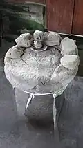 The Sanur stone park near Sanur gathers megaliths dating from the middle of the Bronze Age, collected from diverse places on Bali, as well as recent copies of such stones. The original megaliths were processed with stone tools - which allows them to be distinguished from the recent copies processed with more recent tools - and are evidence of the long human occupation of the island by the Bali Aga people.[2] They come in par with the megalithic stoneworks found in the village of Pedawa (Buleleng Regency).[3]