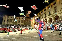 The Saracen joust of Arezzo (Giostra del Saracino, Giostra ad burattum) is a jousting tournament first held in 1260 CE.