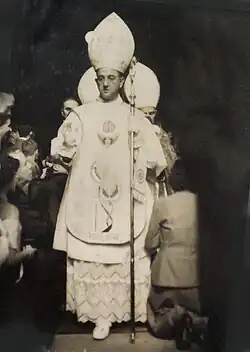 Alberto was one of the largest wine exporters in Caxias, owner of several hotels, lieutenant in the National Guard, and sub-intendent in the 3rd District.[1] His son Luís Victor was the coadjutor chaplain of the Cathedral of Caxias,[162] curate of the Cathedral of Porto Alegre,[163] chaplain of the Church of the Divine Holy Spirit, of the Providência Asylum and the Carmelite Monastery,[164] director of the Military Department of Catholic Action,[165] and later bishop of Santa Maria, where he was an important community leader and an active figure in the articulation of the 1964 military coup,[166][167] one of the pioneers of radio broadcasting in Santa Maria,[168] one of the founders of the Law School (later incorporated to Federal University of Santa Maria), and builder of the Saint Joseph Diocesan Seminary.[169] Remembered by João Spadari Adami as a "notable orator and sacred writer",[170] when he died, he was praised by the leader of the MDB bench in the Legislative Assembly as "an exceptional figure whose services to our people will never be forgotten for the much they enriched the spiritual patrimony of our state".[164]