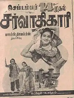 Sarvadhikari (English: Dictator) is a 1951 Indian Tamil-language historical adventure film starring M. G. Ramachandran and Anjali Devi, with M. N. Nambiar as the antagonist.[1] It established Nambiar as a major star.[2] The film is based on the 1948 American film The Gallant Blade. The film was dubbed in Telugu under the same title.[3]
