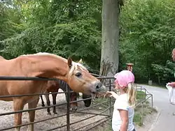 Amongst the species kept are eagles, monkeys, fallow deer, degu, red squirrel, magpie, ducks, donkeys, owls, pheasants, trout, ferrets, fox, rabbits, lynx, weasels, guinea pigs, coatis, horses, sheep, snowy owl, eagle-owl, tawny owl, wildcat, wild boar, gray wolf, zebra finch and goats.