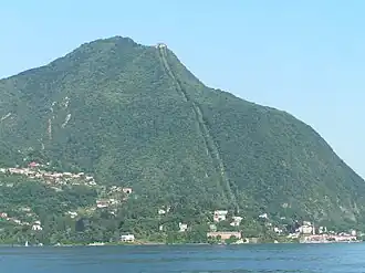 At its base sits the town of Laveno-Mombello, from which the mountain is served by a funicular cable ride to the top. The top of the mountain has a hotel and restaurant popular with tourists, along with a launch board for hang gliders to descend the mountain.